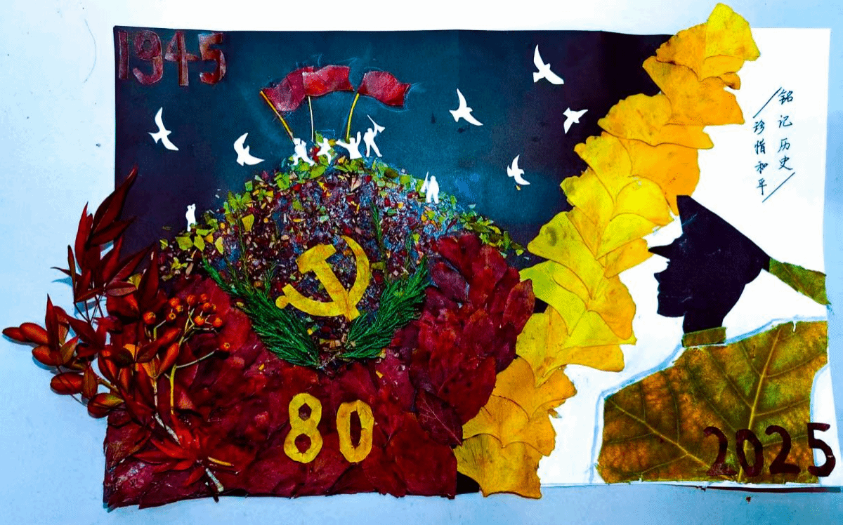 此次活动以“金秋盼落叶,和平映山河”为主题,鼓励师生利用校园内的落叶、枯枝等自然素材,通过剪、贴、拼、叠等手法,创作出兼具思想性与艺术性的和平主题作品。同学们热情高涨,纷纷走进校园角落收集素材,有的以落叶为笔勾勒安宁图景,将白鸽、橄榄枝等和平符号与铁塔湖、明伦堂等校园风光相融,定格岁月静好;有的以自然为卷讲述和平愿景,用不同形状、颜色的叶片组合成携手同行的身影、守望相助的瞬间,传递对安宁生活的珍视;还有的结合专业特色,将分子结构、生态循环等化学与自然元素创意转化,以理科生的独特视角诠释“万物共生、和平共处”的深层内涵。作品题材丰富、构思新颖,每一幅都凝聚着创作者对和平的向往与守护,彰显了我院学子的人文情怀与创新精神。