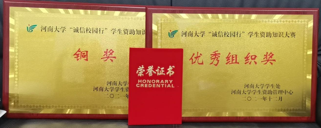 在此次表彰大会中,荣获“资助政策乡村行”活动优秀组织奖、“诚信校园行”学生资助知识大赛优秀组织奖及铜奖,宁攀老师和田梦老师被评为优秀指导老师。