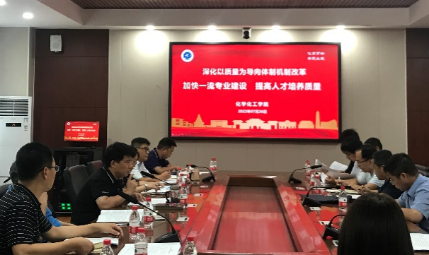 7月26日下午,化学化工学院召开全面深化以质量为导向体制机制改革工作推进会议,学院领导班子成员、学院高层次人才、各专业负责人、专业核心课程教师代表参加了会议。