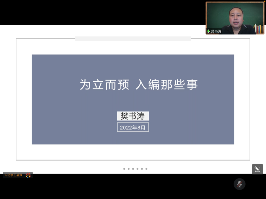 于9月15日下午通过网络平台召开了第二次教育实习讲座。郑州市二七区教研室化学教研员樊书涛应邀出席,2019级化学专业全体学生及实习指导老师参加会议。
