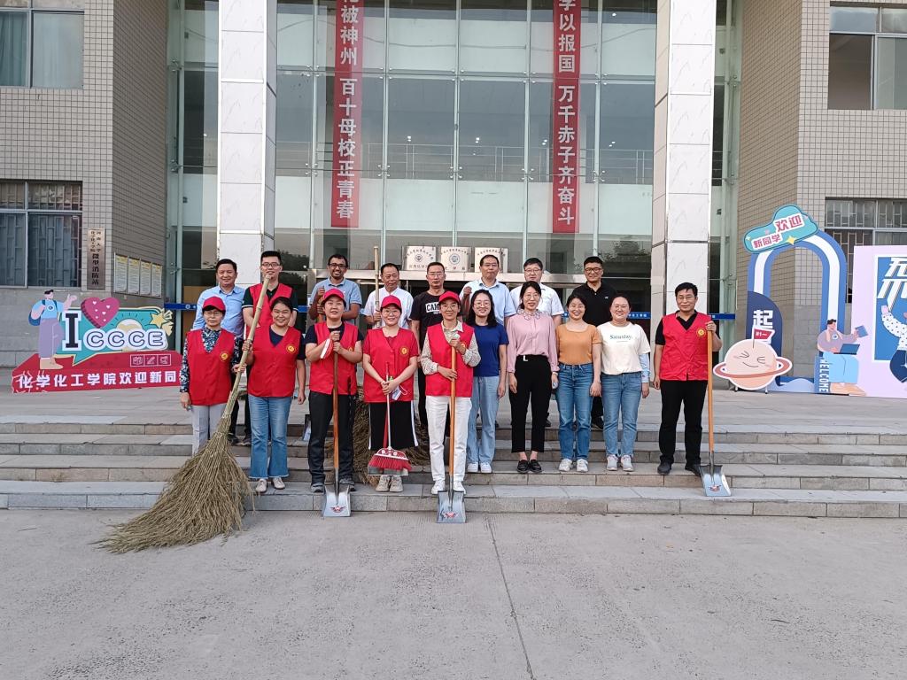 老师们身穿化学化工学院教师志愿服务队的马甲,在化学化工学院科研楼前广场、广场东西侧区域,小树林区域都能看到他们仔细清扫的场景。老师们有的拿着扫帚,有的拿着铲子,尽管落叶难以清扫,灰尘久久不散;尽管额头上汗珠细密,他们也没有停止打扫。经过一个下午的工作,学院周边环境焕然一新。