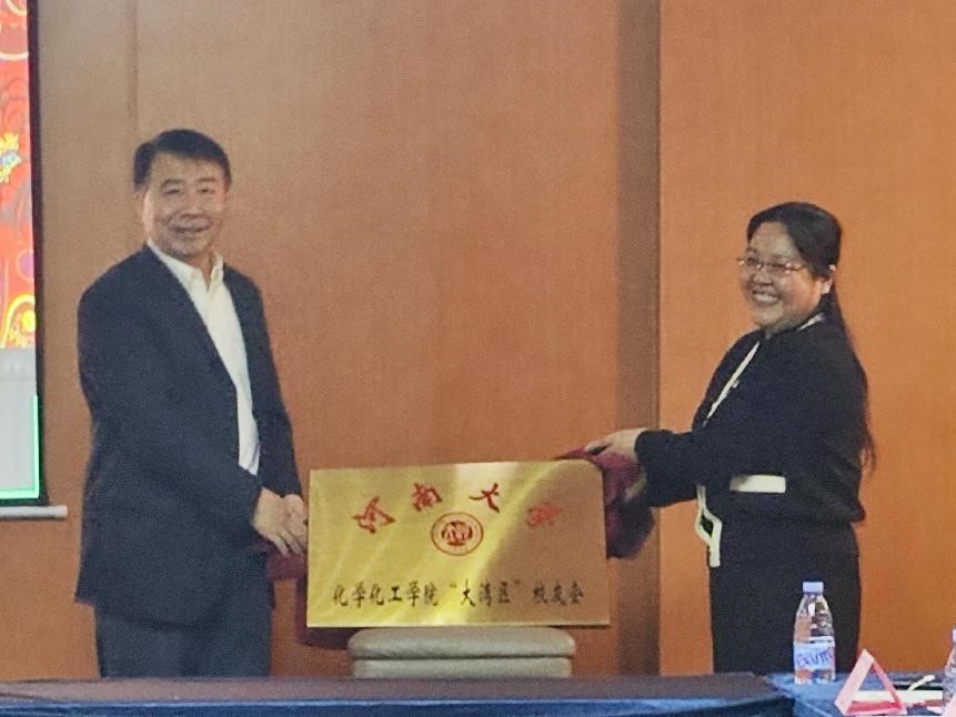 柏䶮与任江鸣一起为化学化工学院“大湾区”校友会揭牌。