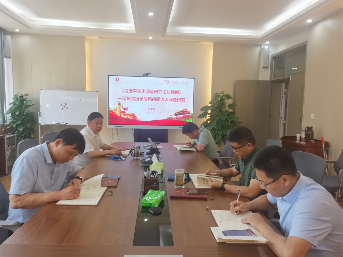 在集中学习阶段,马文海以PPT形式辅导学习了《习近平关于调查研究论述摘编》之—聚焦突出矛盾和问题深入调查研究。