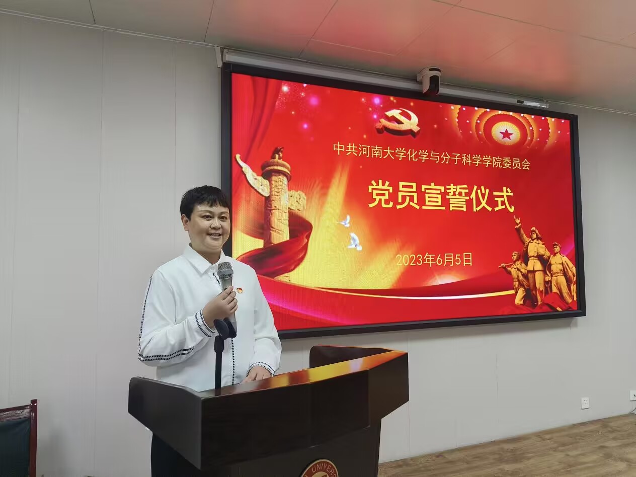 2021级研究生喻冠耀在发言中表示,在党组织的感召下,他们已成长为新一批坚定的共产主义理想的追随者,之后将继续在党组织的培养下不断学习和实践,时刻牢记党员身份,把入党誓词作为终身的追求、终身的修养和终身的实践。毕业生党员代表、2019级本科生代庆华首先对辛勤工作、无私奉献的学院领导和老师们表示了崇高的敬意和深深的感谢。在回顾了自己入党的初心和在组织的培养帮助下逐渐走向成熟的经历后,她表示之后还会继续严格要求自己、不断提升思想政治素养,以一往无前的拼搏精神投身到党的光辉事业中,认真履行新时代青年党员的责任与担当,为党的伟大事业奋斗终身。