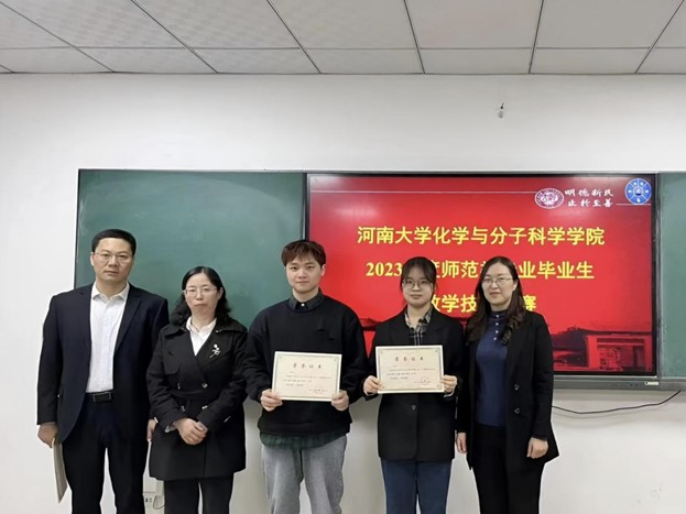 副教授范艳花、胡卫平、李永红以及学院学科教学专业的研究生李宁洁、田园担任本次大赛评委,刘宁担任评委组组长,13位化学专业师范生参加了比赛。
