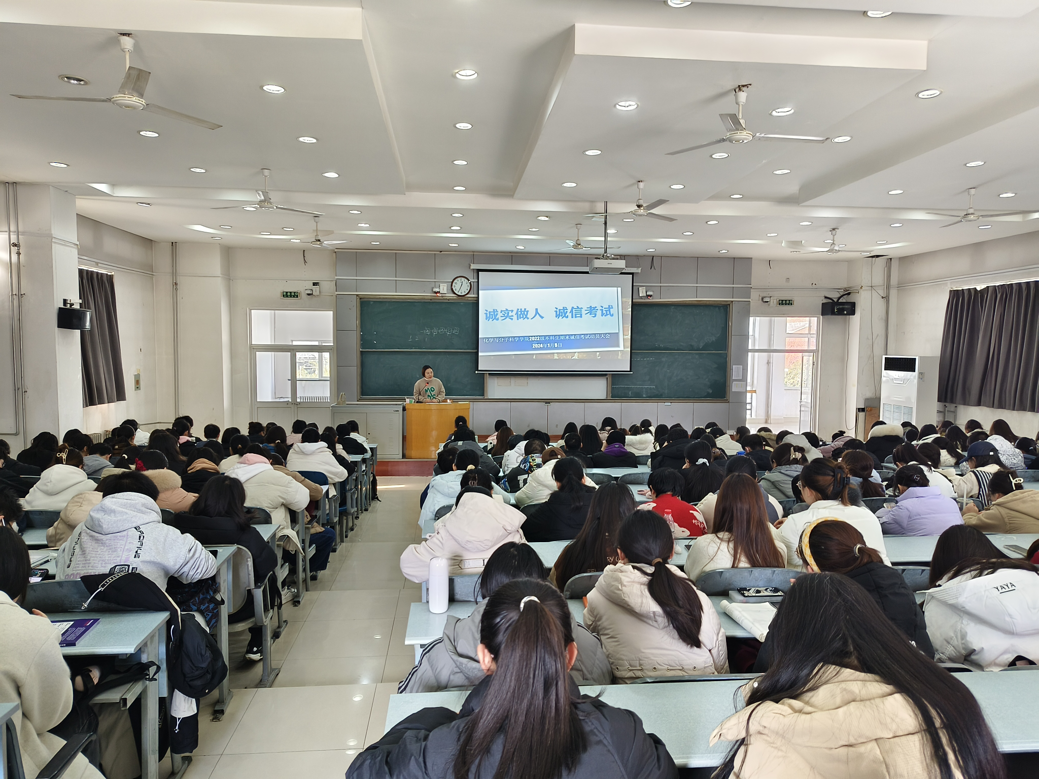 2022级本科生于1月5日在7205教室召开期末诚信考试动员大会。学院党委办公室主任、2022级本科生辅导员宁攀以及2022级全体本科生参加会议。