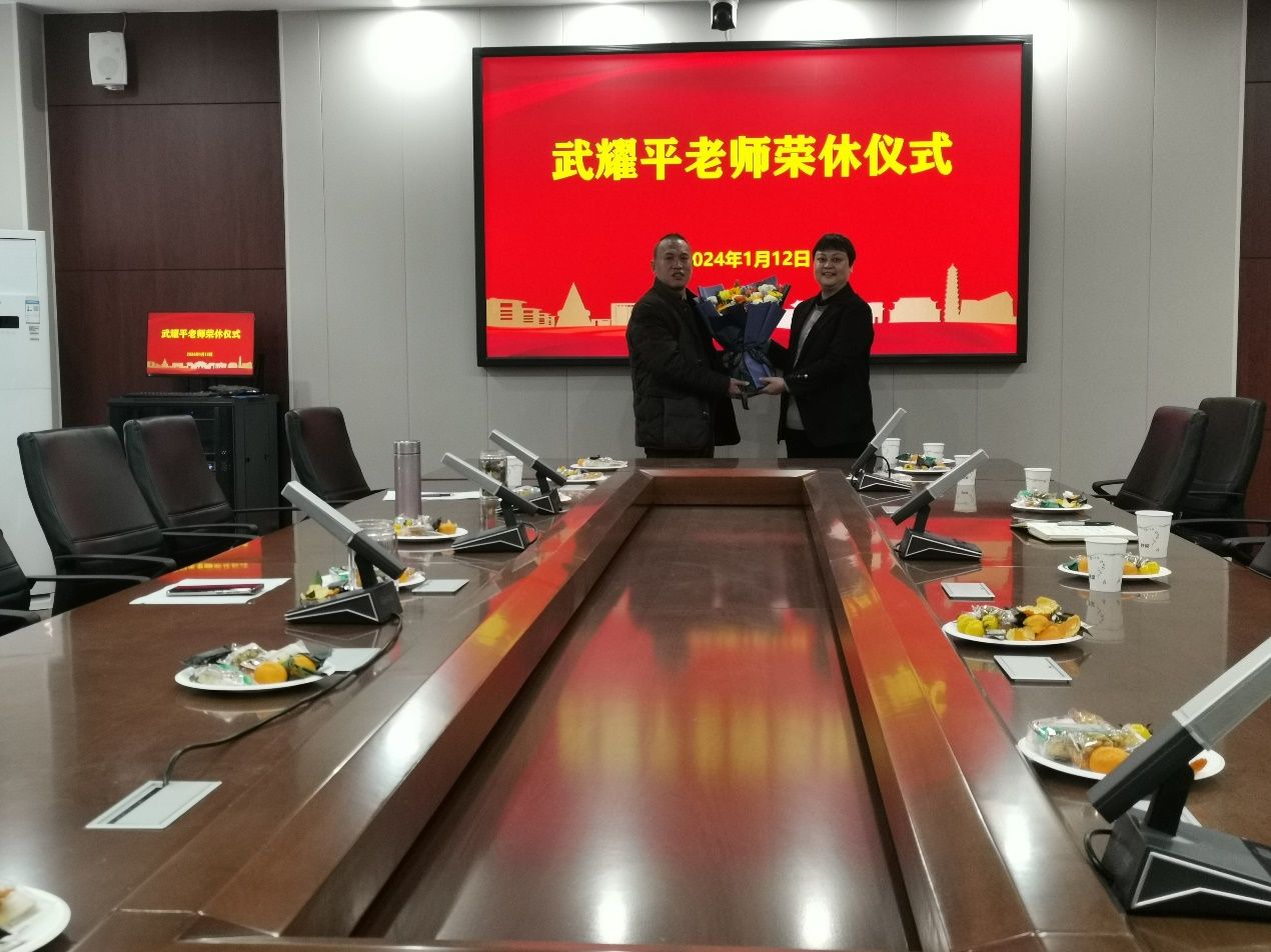 1月12日上午在学院220会议室,学院为实验教学中心武耀平老师举行了荣休欢送会。学院党委书记常凤香、学院工会主席兼党委副书记马文海,副院长屈建莹、张磊、吴玉峰以及实验教学中心的全体教职工出席会议,欢送会由党委书记常凤香主持。