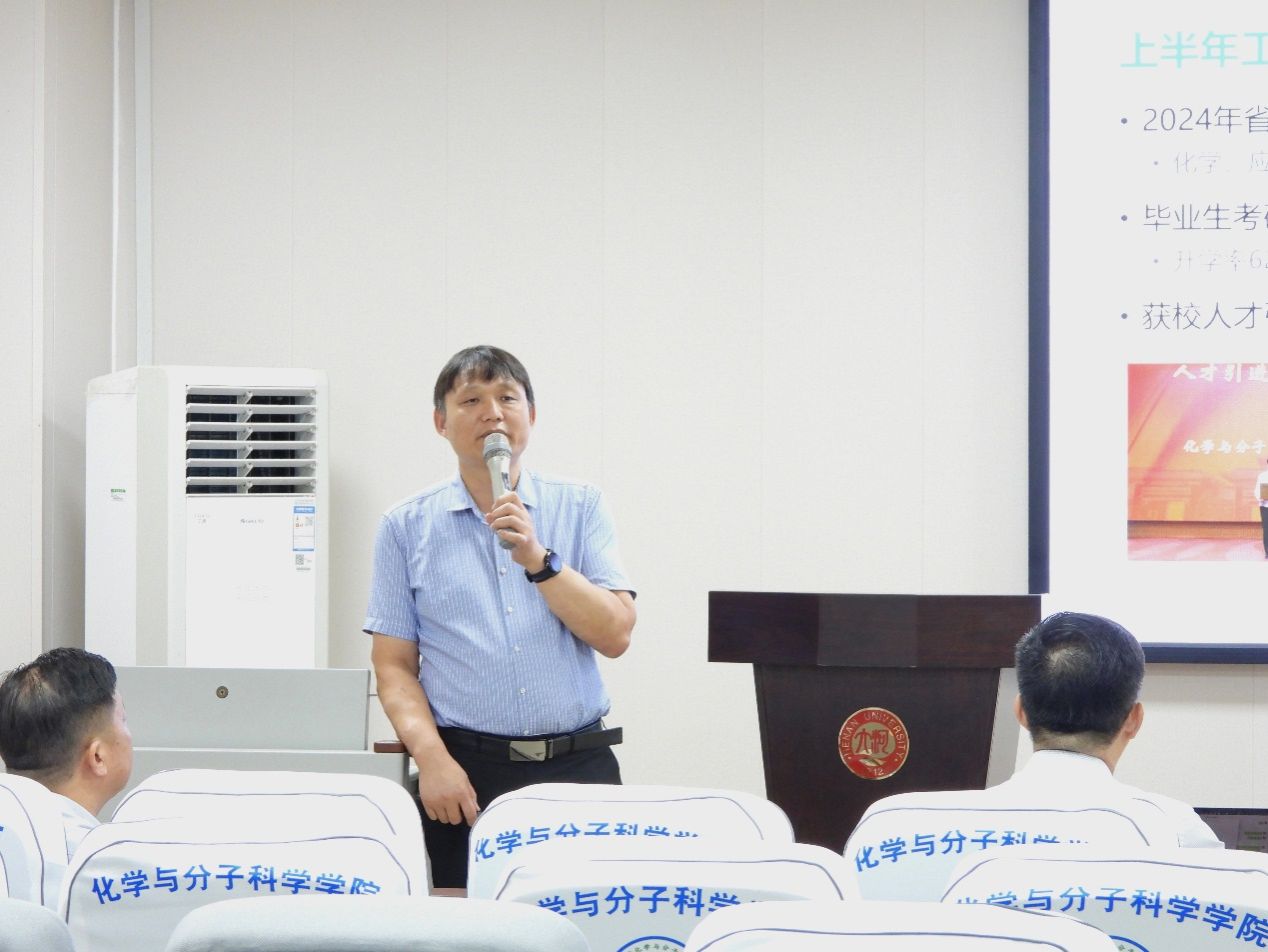 为深入学习贯彻学校2024年暑期工作会议精神,进一步研讨如何加强一流学科建设,推进体制机制改革,8月26日至27日,学院召开2024年暑期工作会议。副校长、化学科学部党委书记乔梁,校学科建设处处长赵俊伟,学院全体领导班子成员、组织员、高层次人才、学术委员会成员、学位分委员会成员、学科带头人、学位点负责人、平台主任、教授 (研究员)、系主任、党支部书记、中层管理人员、全体辅导员、教师代表、学生代表参加会议。