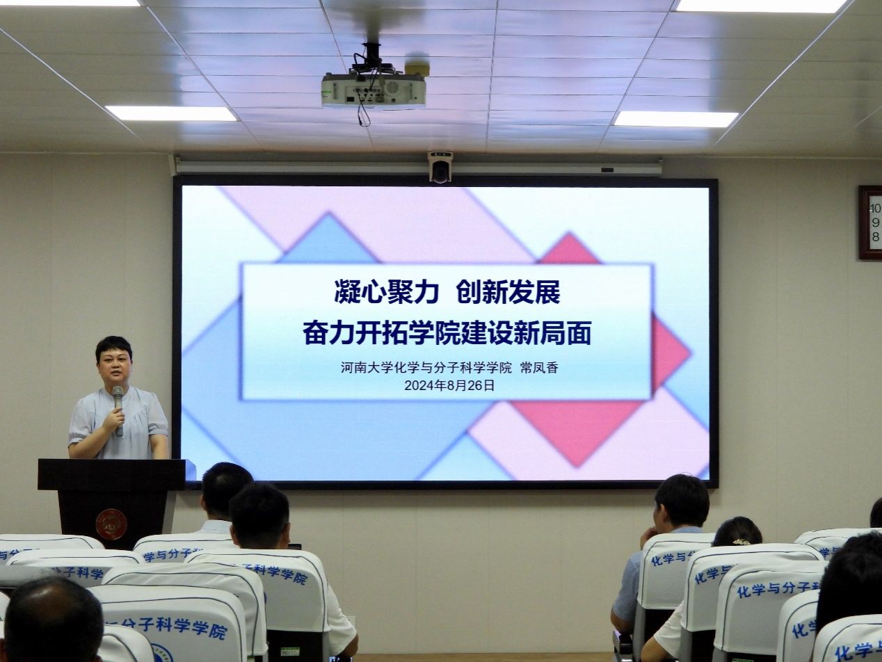 8月27日上午,学院高层次人才及各平台负责人汇报如何围绕学科筑峰和一流学科建设开展工作。国家杰青、院长陈永明介绍了自己的科研进展,从聚合物分子刷-多为可控的单分子纳米材料研究,讲到研究成果在创新疫苗中的应用,该研究获得2024年国家自然基金重点项目立项,树立了科研成果转化应用的榜样;校特聘教授张东娣、省特聘教授王丽、校第四层次人才曹中艳、徐尤智、校百人计划A岗张晓明、河南省工业冷却水循环利用工程技术研究中心主任许英、河南省环境污染控制材料国际联合实验室主任周艳梅、河南省药用植物资源化利用国际联合实验室朱金华、河南省功能材料与催化反应工程研究中心主任丁涛,分别汇报了个人、团队或平台的科研及建设情况。陈永明从团队建设、教师发展、人才培养和学院管理四个方面做了总结,并解答了代表在分组讨论中提出的问题。
