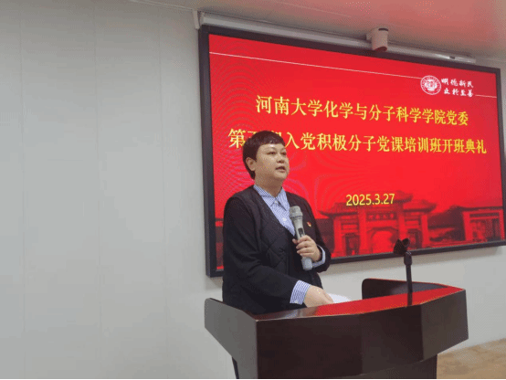 党委第五期入党积极分子党课培训班开班典礼于学院二楼报告厅隆重举行。学院党委书记常凤香、党委副书记马文海、纳米科学与工程研究院副主任张俨娜、本期培训班班主任、学院党委办公室主任宁攀、部分学生党支部书记以及全体培训班学员参加典礼。开班典礼由马文海主持。