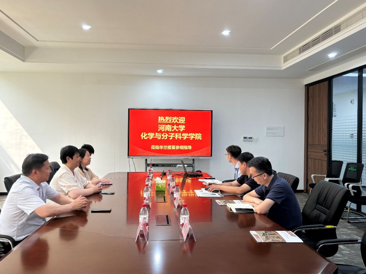 在华兰生物工程股份有限公司展厅,企业综合办公室工作人员详细介绍了其在血液制品、疫苗研发和单克隆抗体领域的产业布局。双方座谈时,华兰生物生产总监韩斌谈到,作为国内生物医药龙头企业,华兰对高端研发人才需求迫切。常凤香谈到,学院正在优化课程体系,强化生物化学、分子生物学等课程的实践衔接。她提出“订单式培养”的想法,可以开设校企联合实验室,推进新型佐剂研发等课题攻关;定向输送毕业生进入企业研发中心,实现“入学即入职”培养模式,推动产学研专利共享机制落地。