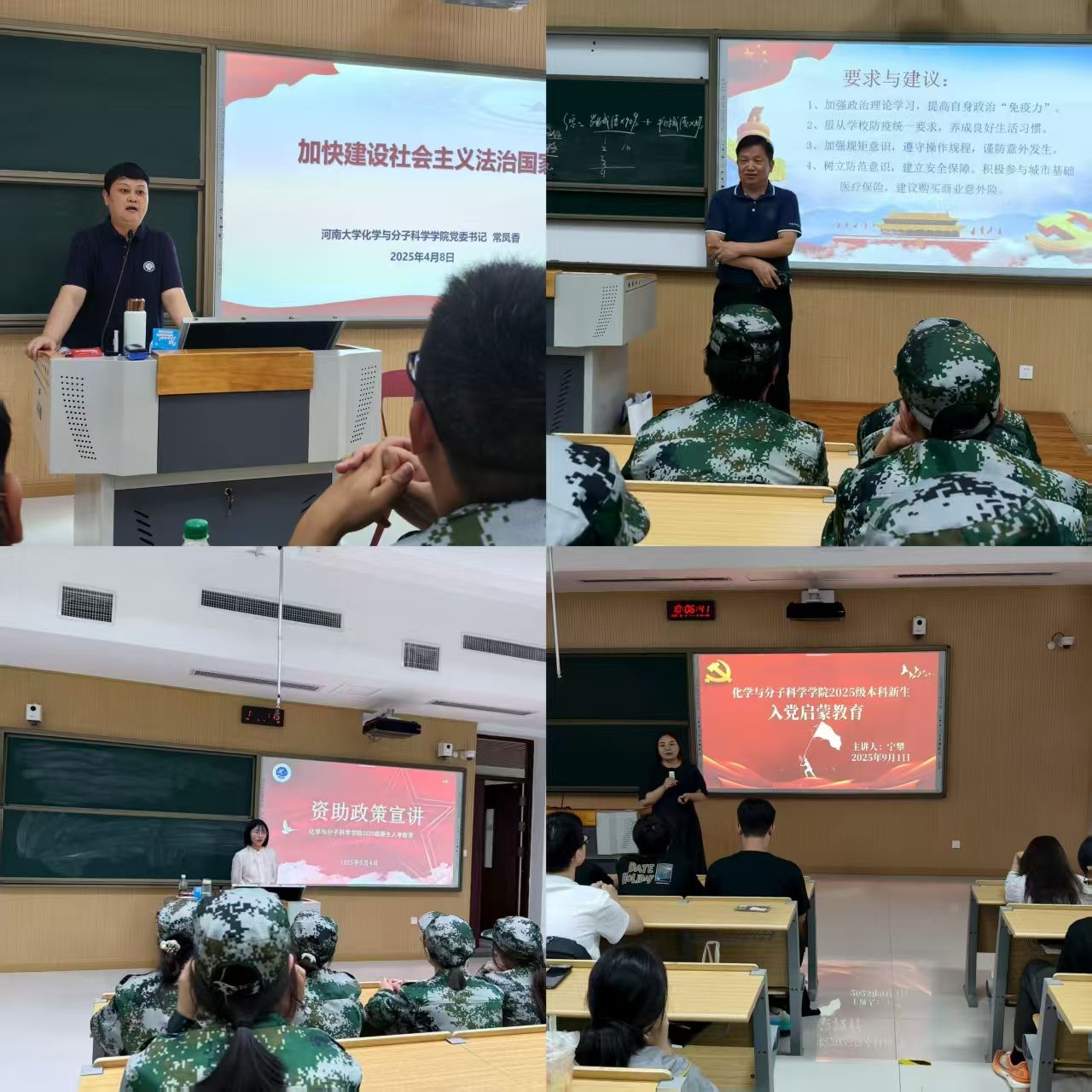 军训期间,学院还利用雨天停止训练的机会,以多维度专题入学教育,助力新生扣好大学“第一粒扣子”。集中开展一系列专题入学教育讲座,涵盖法治教育、学业规划、入党教育、安全教育、校园文化等多个维度,此次系列讲座精准对接新生需求,让新生系统了解大学学习生活的关键信息,树立规划意识,为开启高质量大学生活奠定坚实基础。