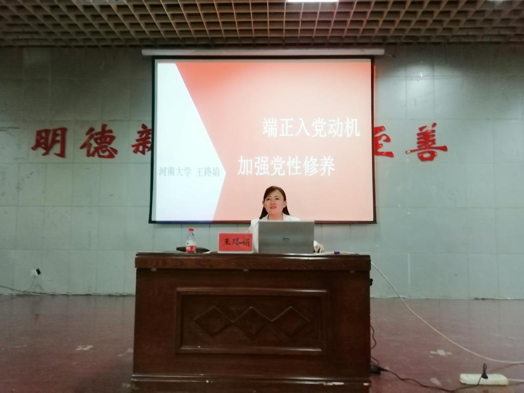 王路娟首先为学生介绍了端正入党动机的含义及其重要性,强调了正确的入党动机是为了献身共产主义,更好的为人民服务而入党的信仰型入党动机,同时也指出了学生中存在的一些不正确的不成熟的入党动机与其纠正办法。之后,王路娟介绍了党性修养的主要内容与新时代大学生党员加强党性修养的主要途径:强思想、提能力、践行动。接着,她讲解了“提高政治站位,强化责任担当,勇做时代先锋”,对新时代大学生党员先进性行为提出了具体要求:勇做坚定者,怀揣初心迎接新时代;勇做奋进者,锐意创新适配新时代;勇做搏击者,接力奋斗拥抱新时代。