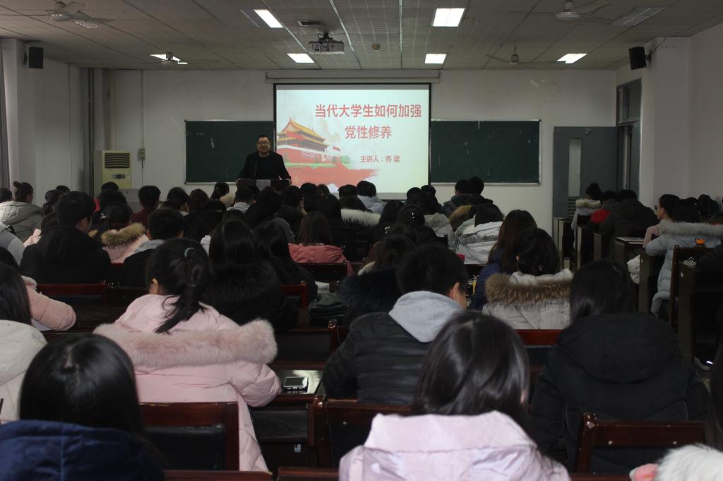 12月10日中午,化学化工学院在学院226会议室举办了“当代大学生如何加强党性修养”的专题讲座,学院全体学生党员到会参加讲座,化学化工学院党委书记乔梁作专题报告。