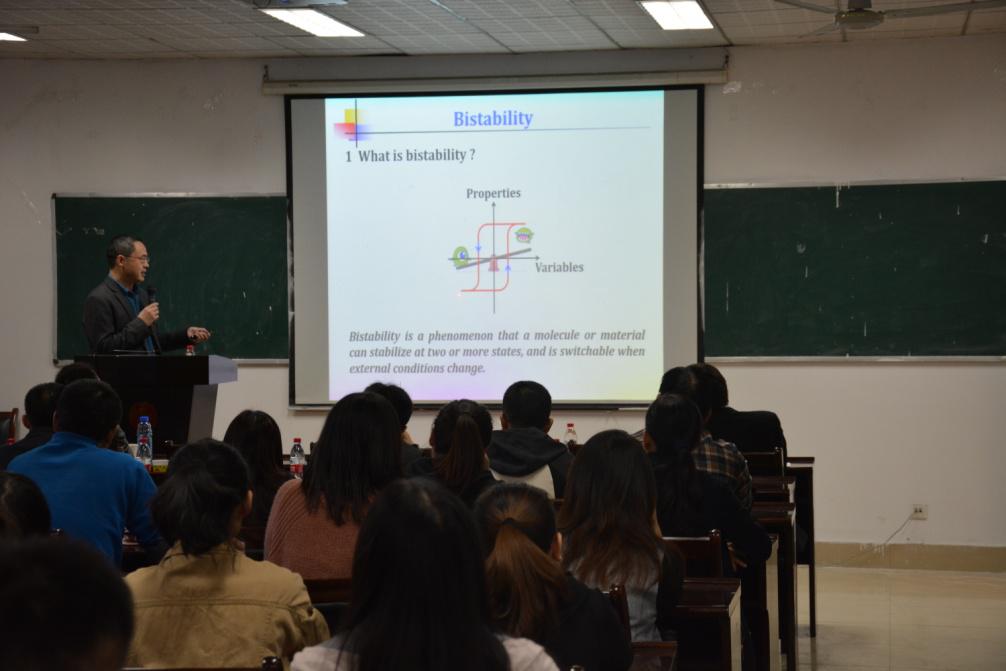 ,并在226会议室作了题为“双稳态分子材料”的学术报告。报告会由副院长徐元清主持,八十余名师生聆听了报告。