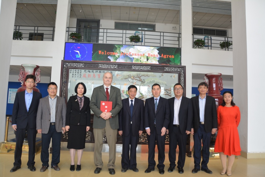10月13日上午,我校在化学化工学院举行聘任仪式,国际著名理论化学家、瑞典皇家工学院汉斯•安格瑞教授受聘为我校客座教授。校党委常委、副校长杨中华出席会议并为汉斯颁发聘书,海外引智办公室、化学化工学院相关负责人及师生代表参加了会议。会议由海外引智办公室主任毛立群主持。