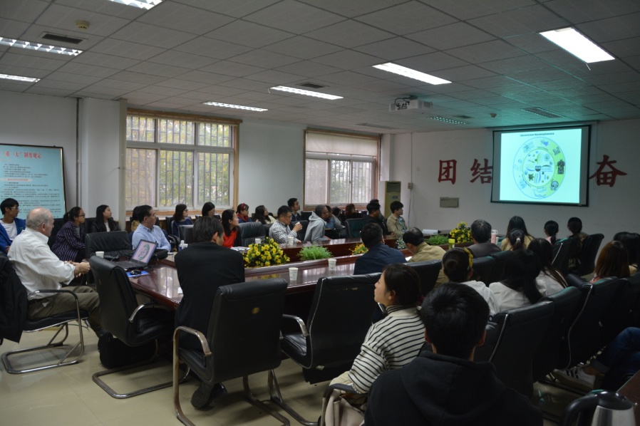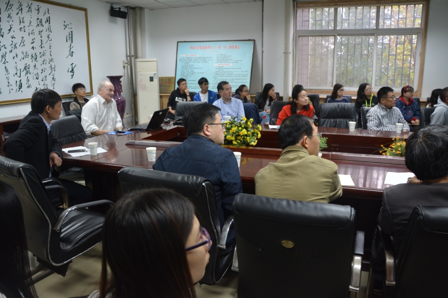 随后,汉斯还做了一场题为“Nanobiotechnology: From computational modelling to materials and devices”的学术报告,介绍了理论化学在材料、生物体内成像等各个方面的应用,对师生提出的问题一一进行了解答。报告结束后,汉斯还与学院部分师生进行了座谈。此次交流活动开阔了学院师生的学术视野,使大家感受到了理论化学的魅力。