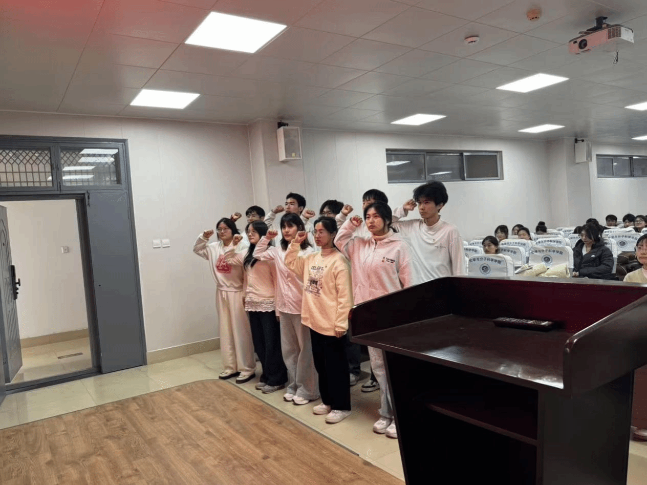 随后,田梦在仪式上致辞。她首先向所有新发展团员表示热烈祝贺,并指出,共青团是党的助手和后备军,是青年学习中国特色社会主义和共产主义的大学校。她寄语全体团员青年,要牢记入团誓词,坚定理想信念,筑牢信仰之基;要珍惜团员身份,自觉加强理论武装,积极参与团学活动,在服务集体、奉献社会中锤炼本领、实现价值;要胸怀“国之大者”,将个人理想追求融入国家发展和民族复兴伟业,特别是在化学与分子科学领域,要勇于探索创新,立志科技报国,努力成长为有理想、敢担当、能吃苦、肯奋斗的新时代好青年,在全面建设社会主义现代化国家的新征程中谱写绚丽的青春华章。