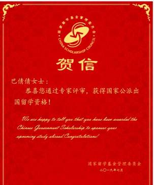 2016级研究生巴倩倩获得赛格德大学全额奖学金资助