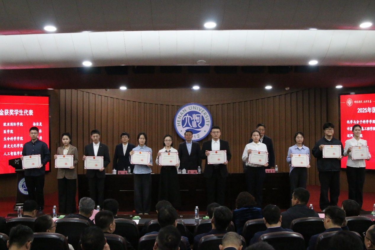 首届“我最喜欢的辅导员”荣誉称号,2023级本科生金瑜作为国家奖学金获奖代表登台领奖。