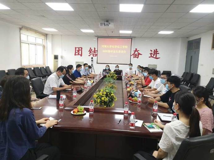 6月18日下午,化学化工学院2020届毕业生代表座谈会在学院220会议室召开。化学化工学院常务副院长、党委副书记柏䶮、党委副书记马文海、副院长刘学军、张磊、化学系主任李亚敏、应用化学系主任房晓敏、化工系主任郭泉辉以及2020届研究生和本科毕业生代表参加座谈。座谈会由马文海主持。