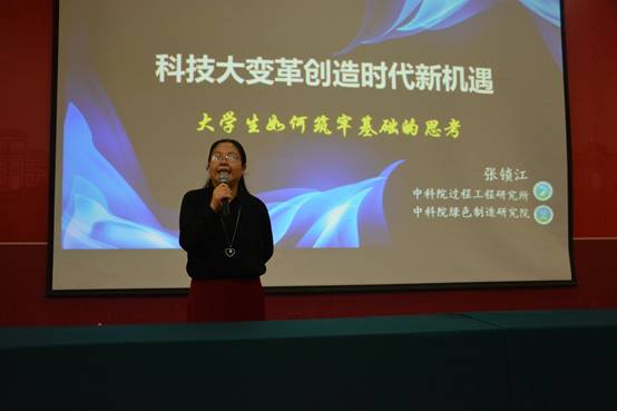 张锁江以“科技大变革创造时代新机遇”为题,围绕“大学生如何筑牢基础的思考”这一主题,从大趋势、成长之路、学习、展望未来四个模块展开论述,为大家上了意义非凡的一课。