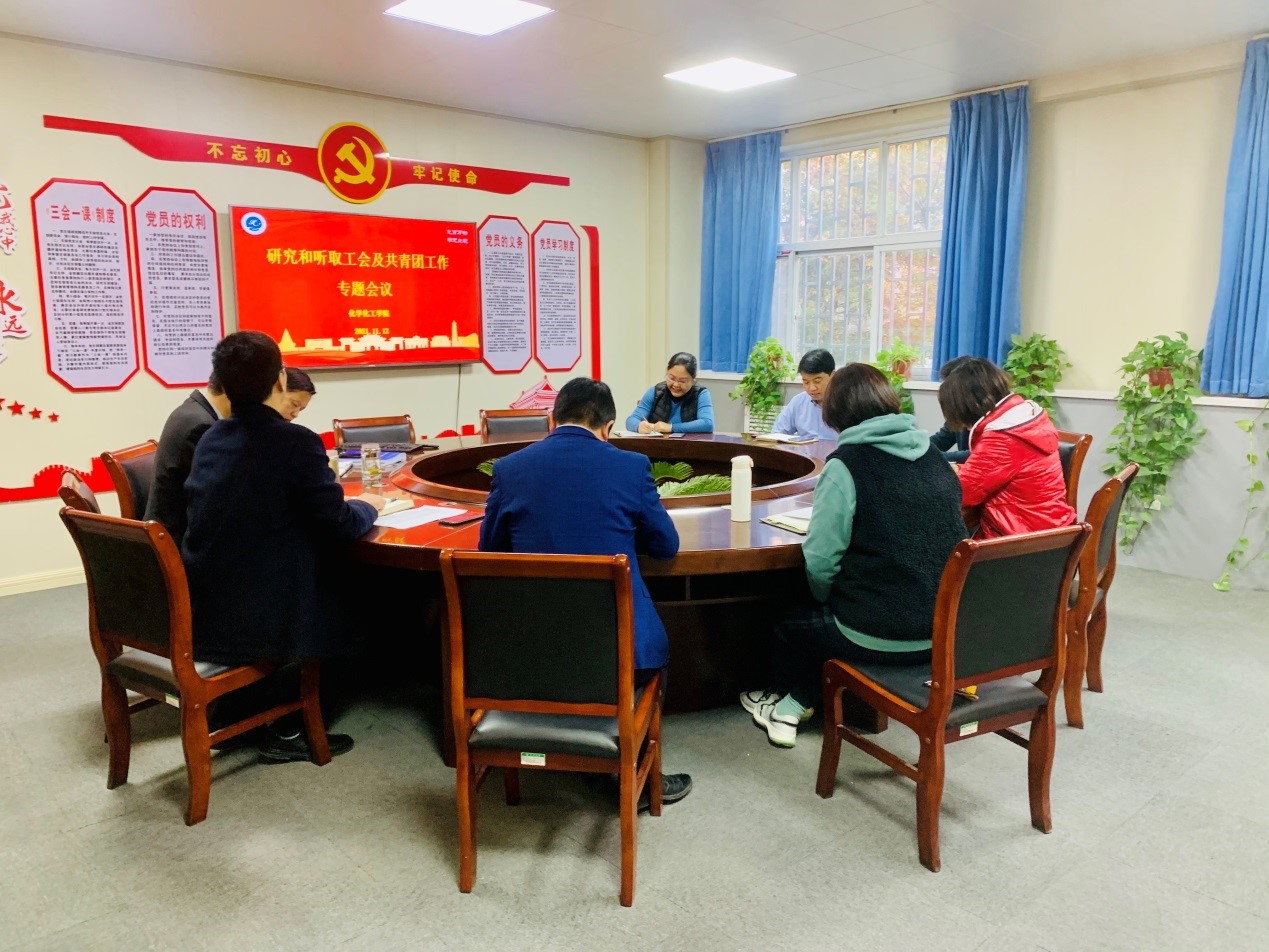 学院团委副书记郭佳从学院团委本年度工作所取得的成绩、工作特色亮点、目前存在的困难和下一步打算四个方面,汇报了团委工作开展情况。学院党委副书记、工会主席马文海作了《化学化工学院工会工作情况报告》,介绍了工会的常规工作、特色工作开展落实情况,并分析了工会工作存在的不足、并对近期的工会活动进行安排,提出了今后的工作思路。