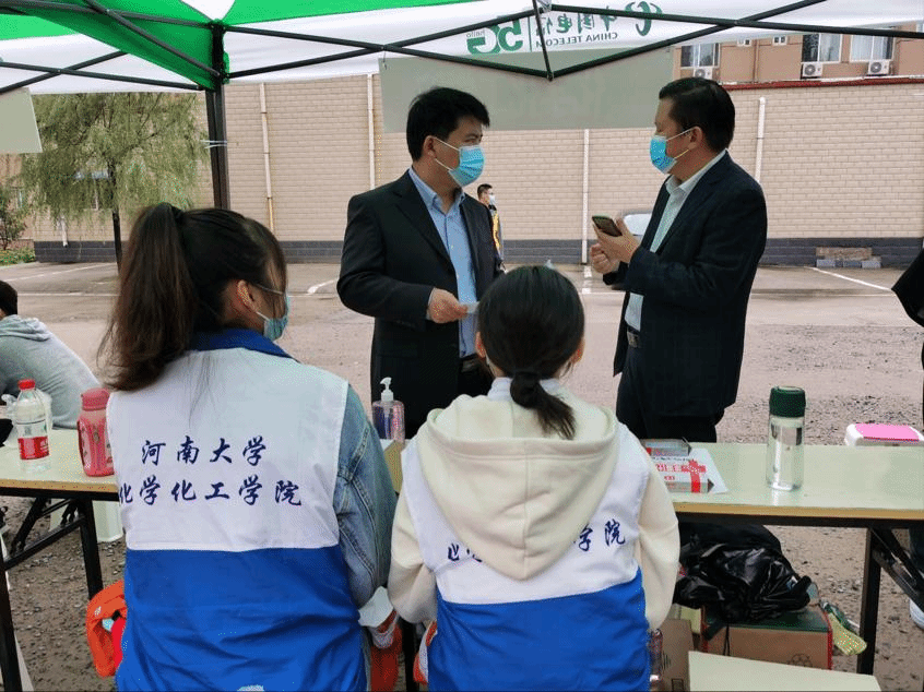 “耐心如沉水,答疑解惑。热情似骄阳,贴心引路。”迎新的学长学姐们热情周到的服务很快消除了新生们初来乍到的陌生感。在迎新的过程中,学院党委书记翟新礼、党委副书记马文海来到了志愿者的服务摊位,对迎新的情况进行了解,并肯定了志愿者的工作,了解到最近连日下雨刮风,翟书记和马书记贴心的提醒志愿者多穿衣服避免感冒。