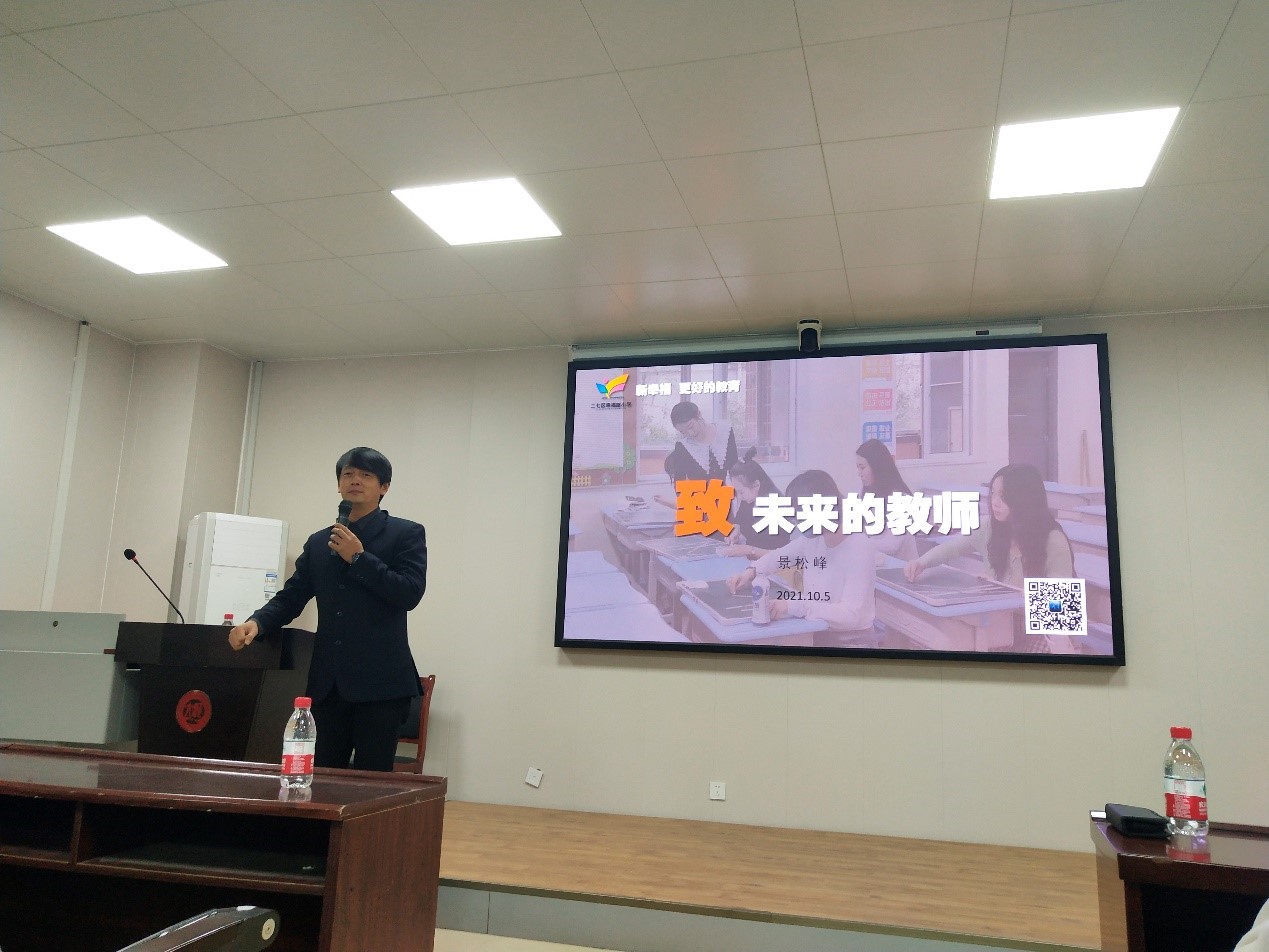 随后,他以自己工作的学校为例,讲解要想成为一名优秀教师,虽然需要付出很多,但同时也会感觉很快乐。最后,景松峰老师以法国作家罗曼罗兰讲过的一句话结尾“要撒播阳光到别人心中,总得自己心中有阳光。”