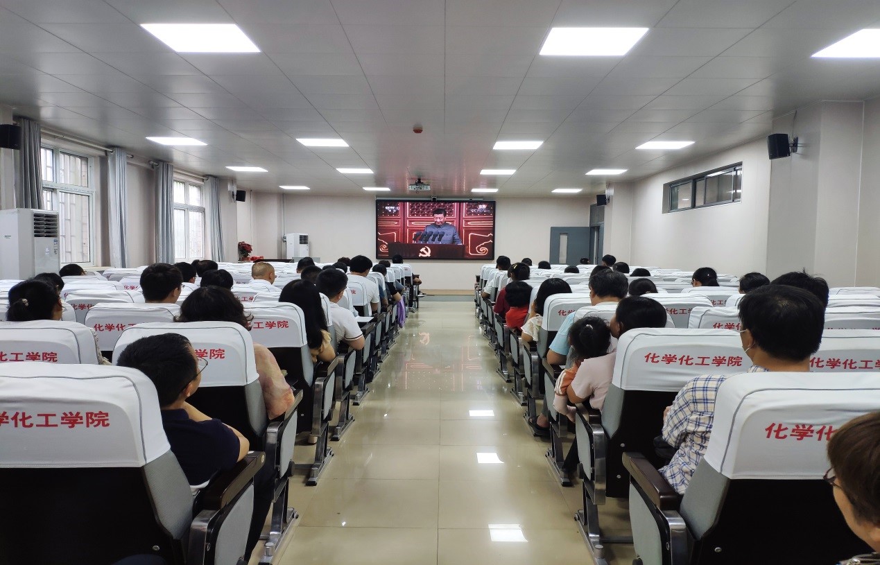 党政领导班子、师生党员代表分别在学院220、226和229三个会议室集中收看大会直播盛况,共同感受党的百年风华,庆祝党的百年华诞。