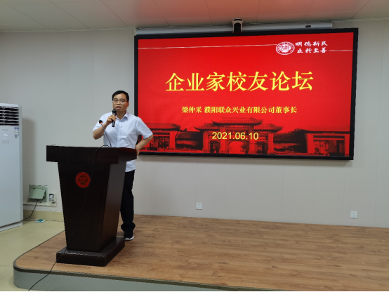 会谈前,梁仲采还在226会议室为学院2018级和部分2017级本科生代表作了一场报告。他首先介绍了公司的发展历史和现状,表达了对母院同学加盟的期盼之情。随后,他结合自己的经历,和大家一起分享了自己的人生感悟。