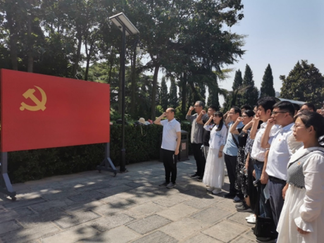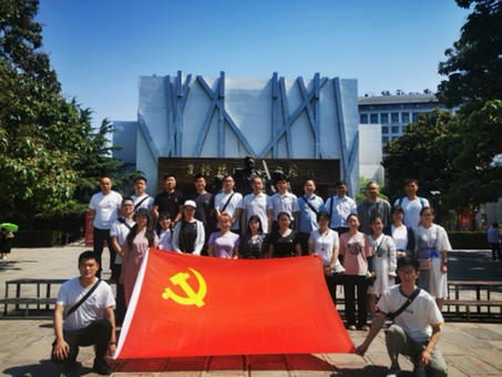 为庆祝建党100周年,学习中国共产党团结带领中国人民不忘初心、牢记使命、艰苦奋斗的百年光辉历程,2021年6月6日,纳米材料工程研究中心组织全体教工党员和新发展学生党员及博士党员30余人,赴兰考焦裕禄烈士陵园开展“百年风华,初心如磐”主题党日活动,学习焦裕禄同志先进事迹,重温入党誓词,缅怀革命先烈。