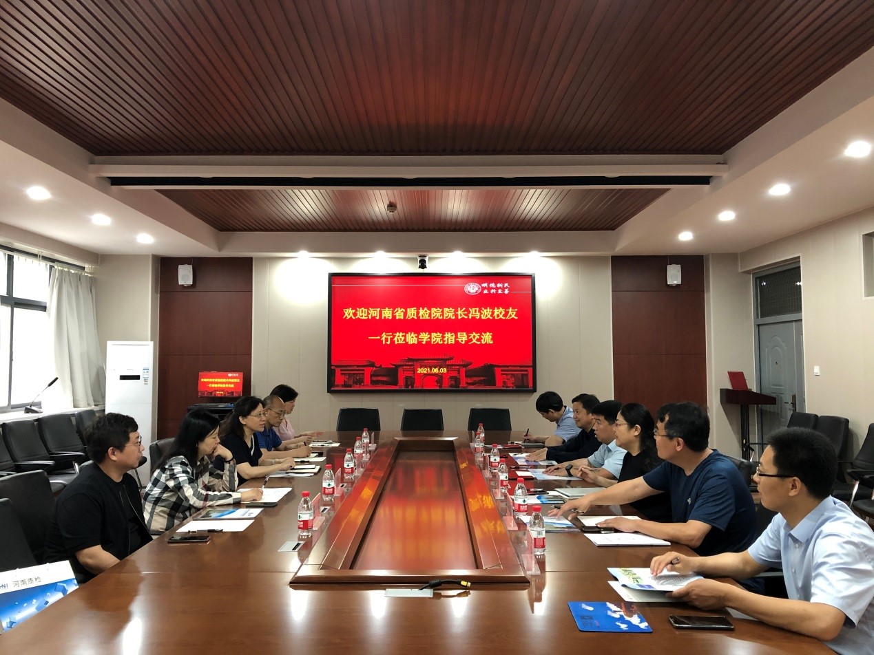 领导班子成员介绍了随行的省质检院人员,并介绍省质检院情况。省质检院成立于1980年,现有各类人员400余人,内设食品、石化等11个检验中心,主要承担产品质量检测、生产许可证发放检验、仲裁检验、产品质量委托检验、新产品定型检验、检测技术与标准研究和自愿性产品认证等。目前拥有“国家建筑装修材料质量监督检测中心”等五个国家级质检中心和“河南省食品包装材料产品质量监督检测中心”等四个省级质检中心。省质检院一直秉承公平、科学、优质、高效的理念为社会提供服务。