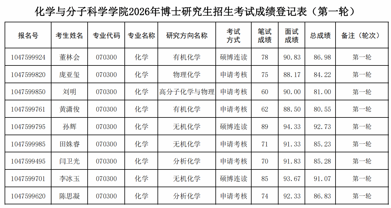 Porn87 2026年博士研究生招生考试成绩登记表(第一轮)