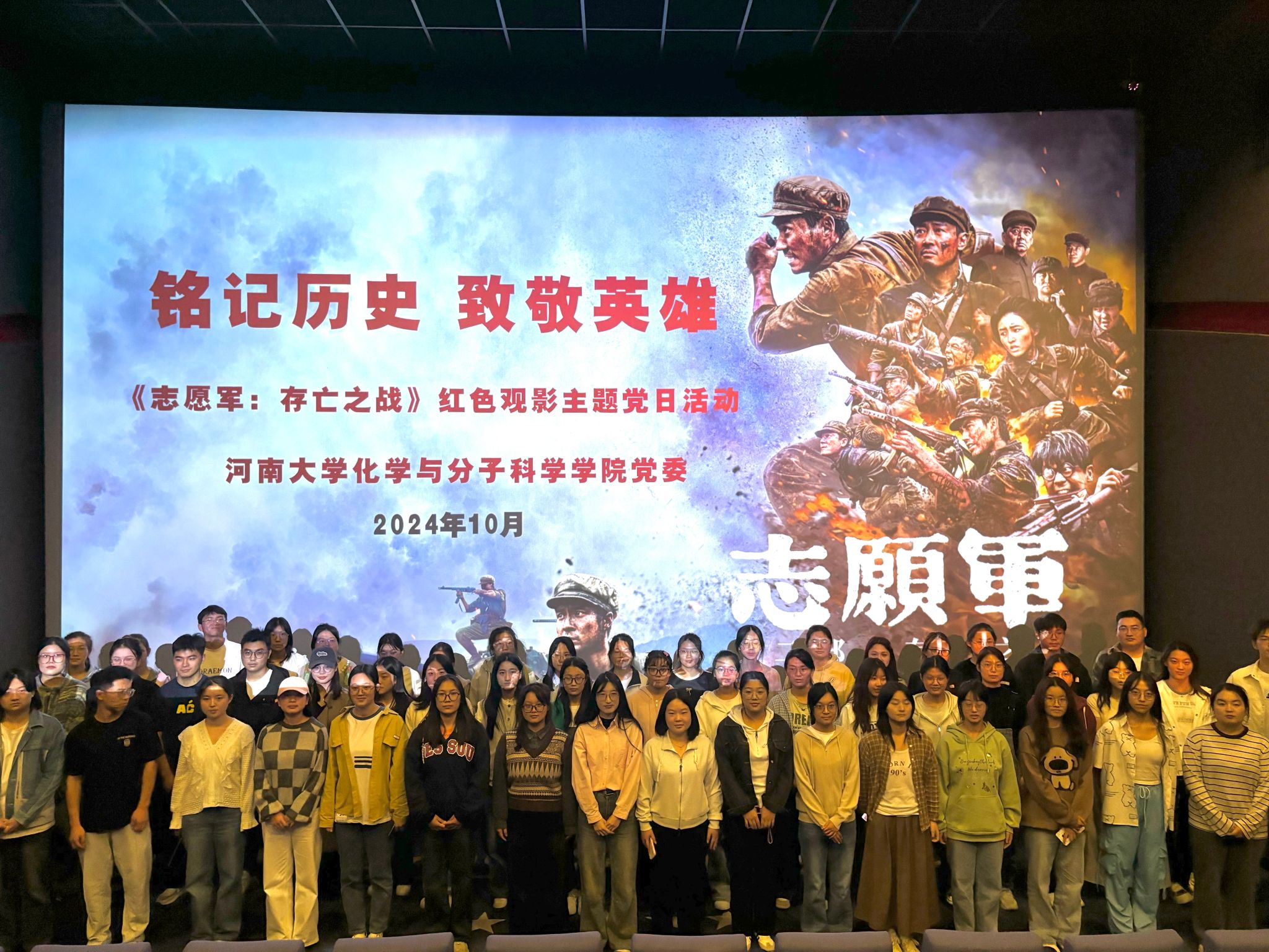 党委组织师生党员、入党积极分子共计80余人开展“弘扬爱国情怀 传承红色基因”主题党日活动,集体观看红色影片《志愿军:存亡之战》。