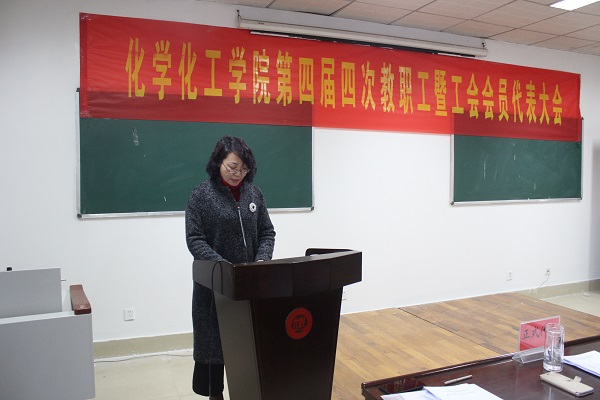 学院工会主席杨更须向大会作《不忘初心,服务教工,把工会工作做到实处》工会工作报告和《化学化工学院财务收支情况说明报告》。学院工会副主席蔡永红作《化学化工学院2016年提案工作情况的报告》。