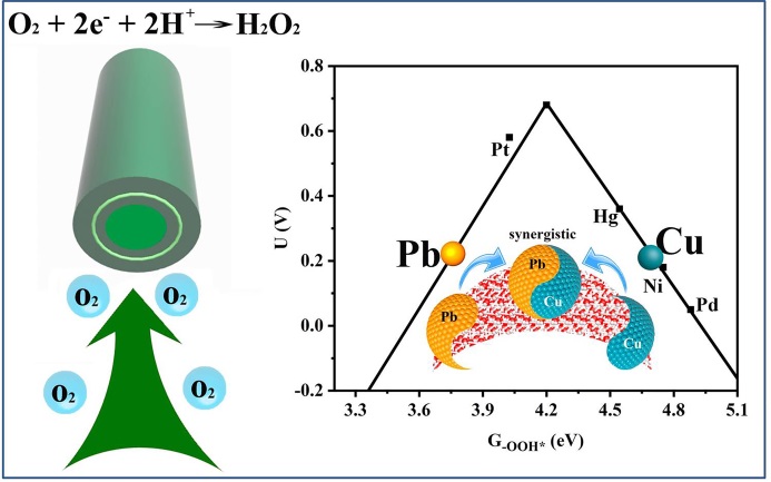过氧化氢(H2O2),作为一种重要的无机化合物,在水处理、造纸、化学合成等领域被广泛应用于消毒、清洁、漂白、氧化等环节。目前,工业规模化生产H2O2主要依赖在一定温度、压力及催化剂作用下和H2、O2发生来合成,该制备过程相对复杂且能耗巨大,促使许多研究人员致力于开发更加经济、高效的催化工艺。利用两电子的氧还原反应(2e- ORR)合成H2O2是一种极具应用前景的常温制备方案,但大多的电催化剂普遍活性偏弱和选择性较差,在实际应用中仍旧面临着巨大的挑战。本工作中,以Cu-Pb为例,研究者将突破点聚焦于金属间的协同效应,综合运用DFT理论计算,电化学信号,原位拉曼以等手段,证明了协同效应对于提升电还原O2制H2O2的性能具有积极的促进作用。该研究是课题组继HER(Chem. Sci., 2018, 9, 5640. 影响因子9.825)及NRR(ACS Mater. Lett., 2021, 3, 327. 影响因子10.289)工作后,在电催化领域的又一创新研究。该研究工作中河南省多酸化学重点实验室为第一单位,第一作者为2019级硕士生杨雨露同学。