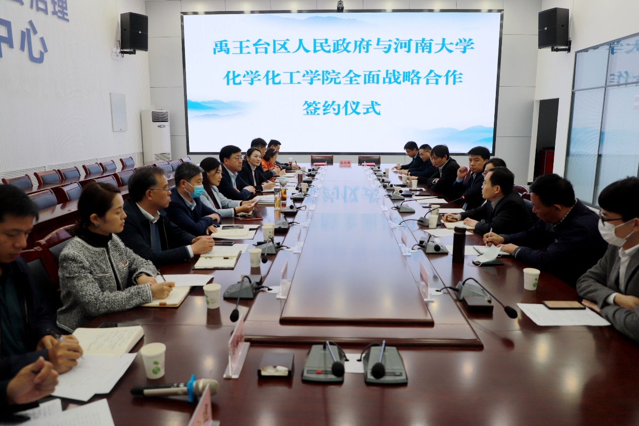化学化工学院全面战略合作的序幕,希望双方以本次签约活动为基础,加强务实合作,不断推进合作内容更加丰富、合作步伐更加快速、合作成果更加丰硕,推动禹王台区经济高质量发展。