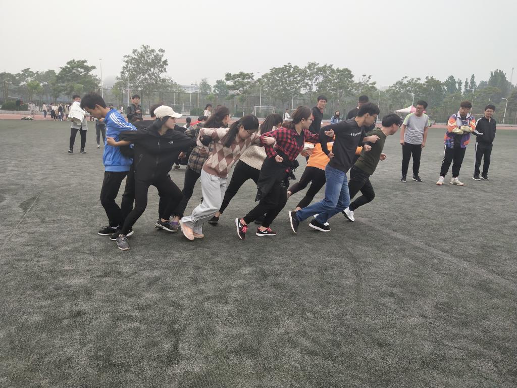 与文学院在东操场举行集体项目友谊赛。此次比赛项目有袋鼠跳,勇过浮桥,巧划旱船,带球绕杆,棍推乾坤等春运会集体项目。