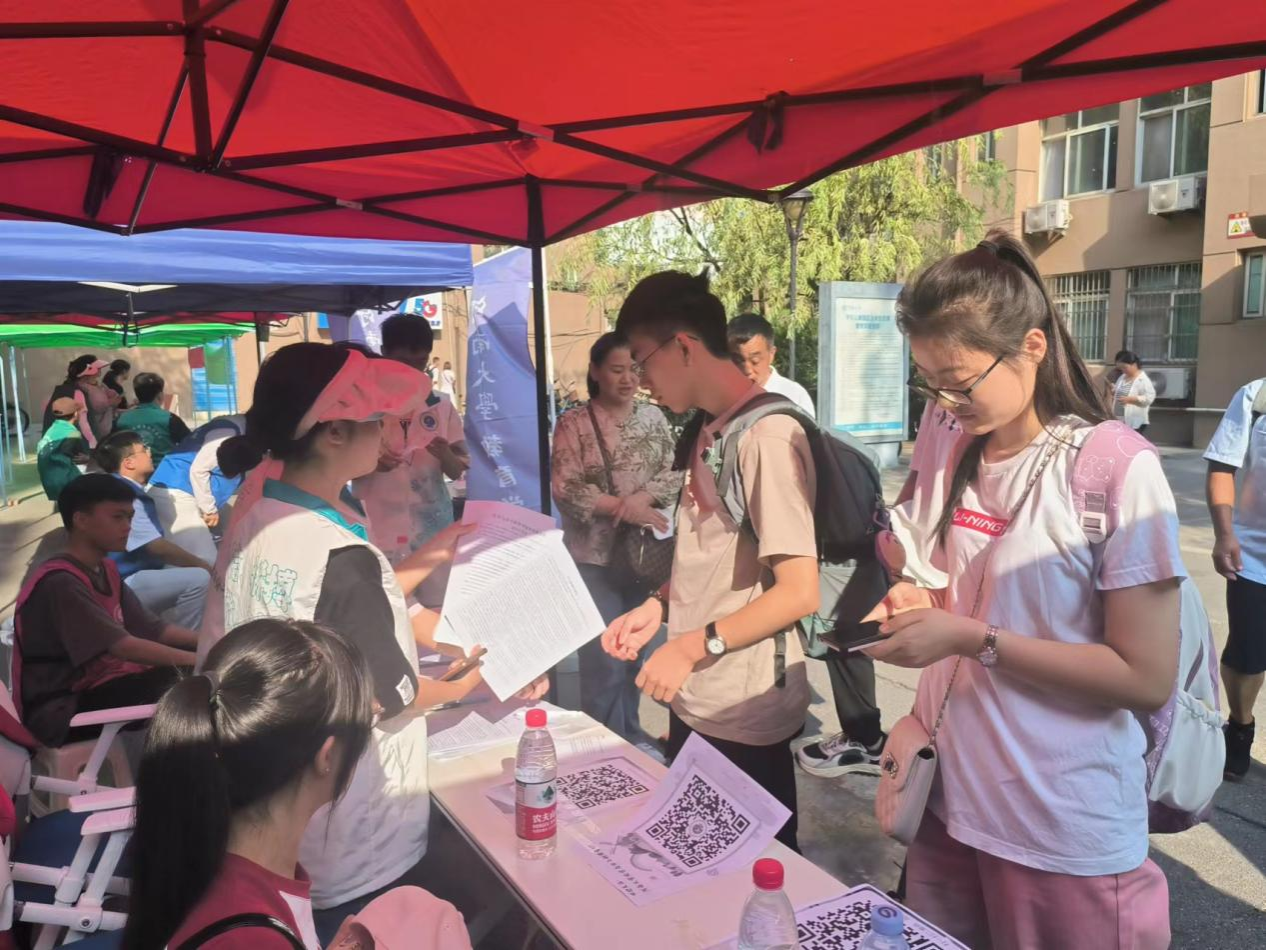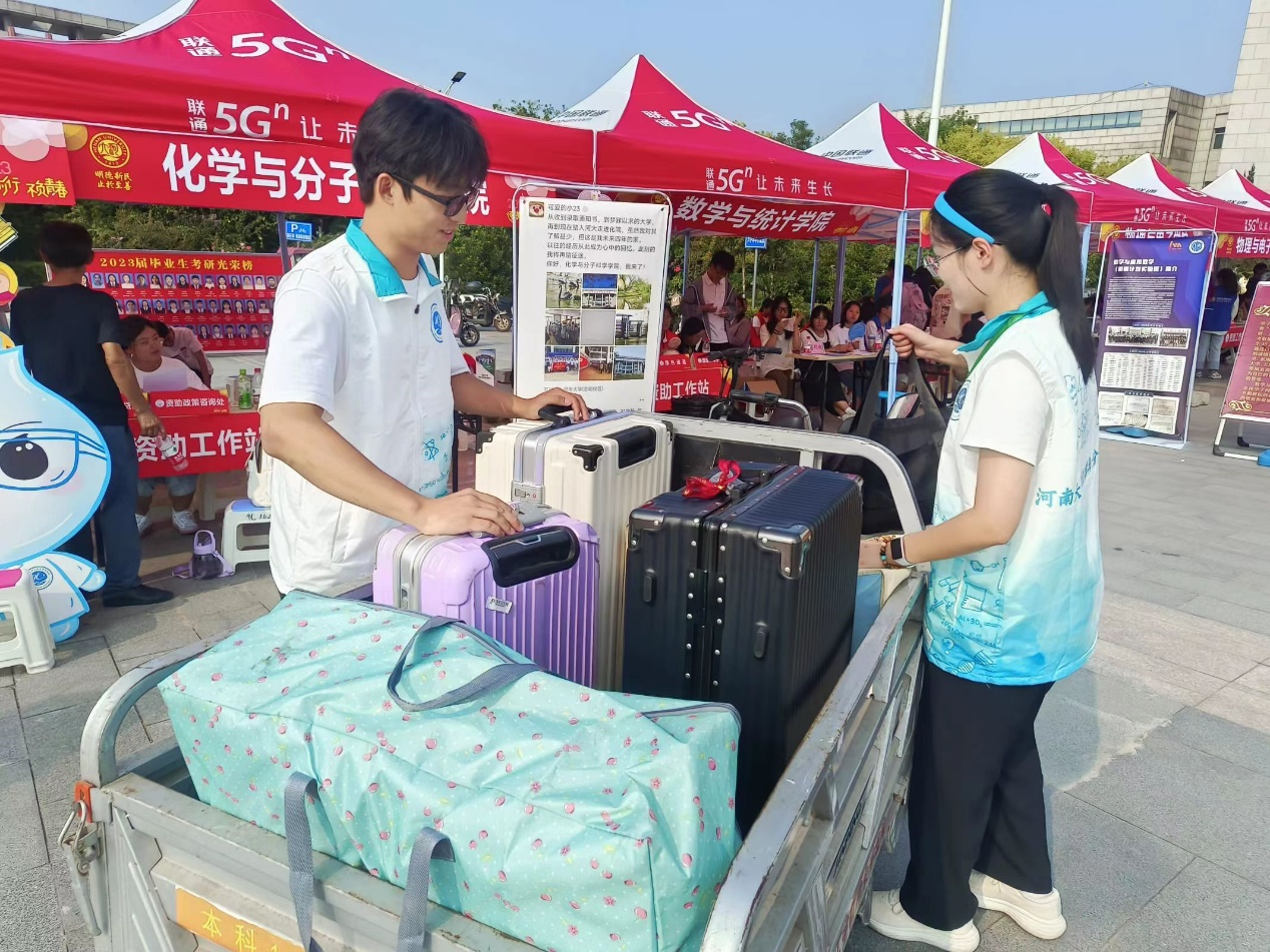 金明校区西门、学院大厅以及北苑学生公寓同步开展迎新工作。此次迎新活动由学院学生会全体成员以及2022级班级志愿者共同负责。