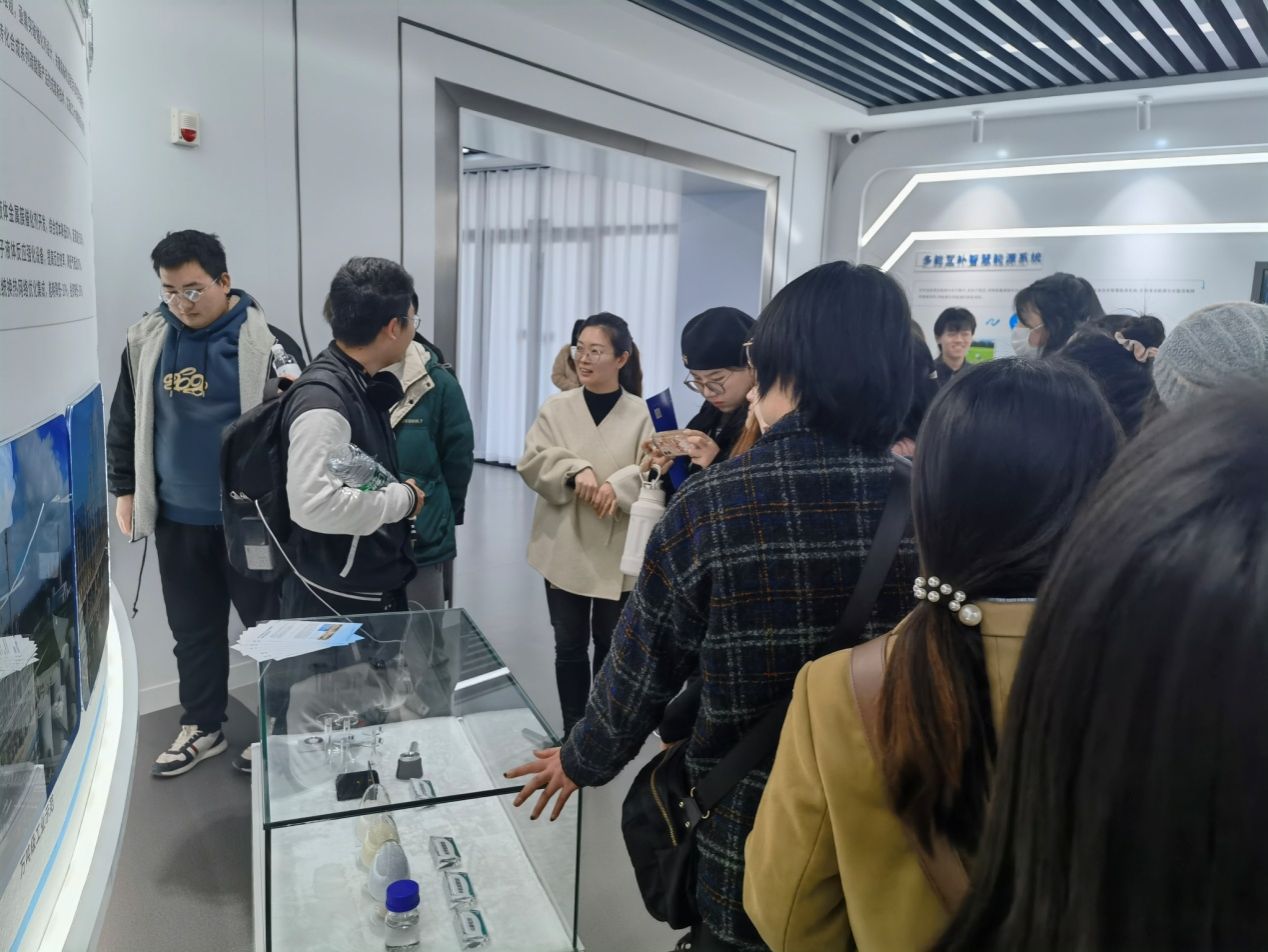 同学们首先来到实验室成果展厅,深入了解龙子湖新能源实验室的建设历程、科学研究及成果转化情况。展区负责人还通过多个模拟装备的介绍,向同学们展现了国家新能源领域的发展建设情况,并以日常生活中广泛应用的实例,帮助同学们更好地认识和理解。