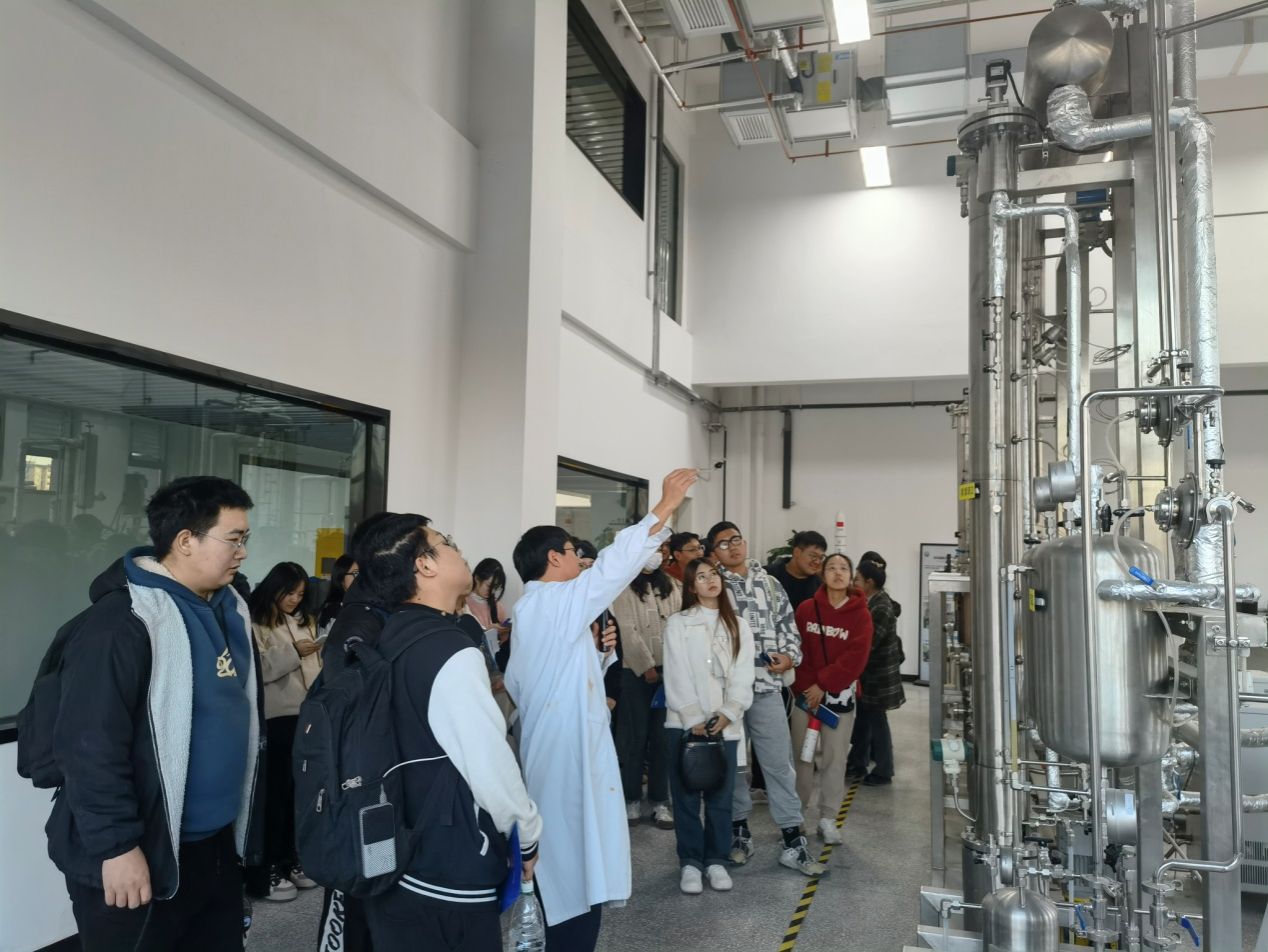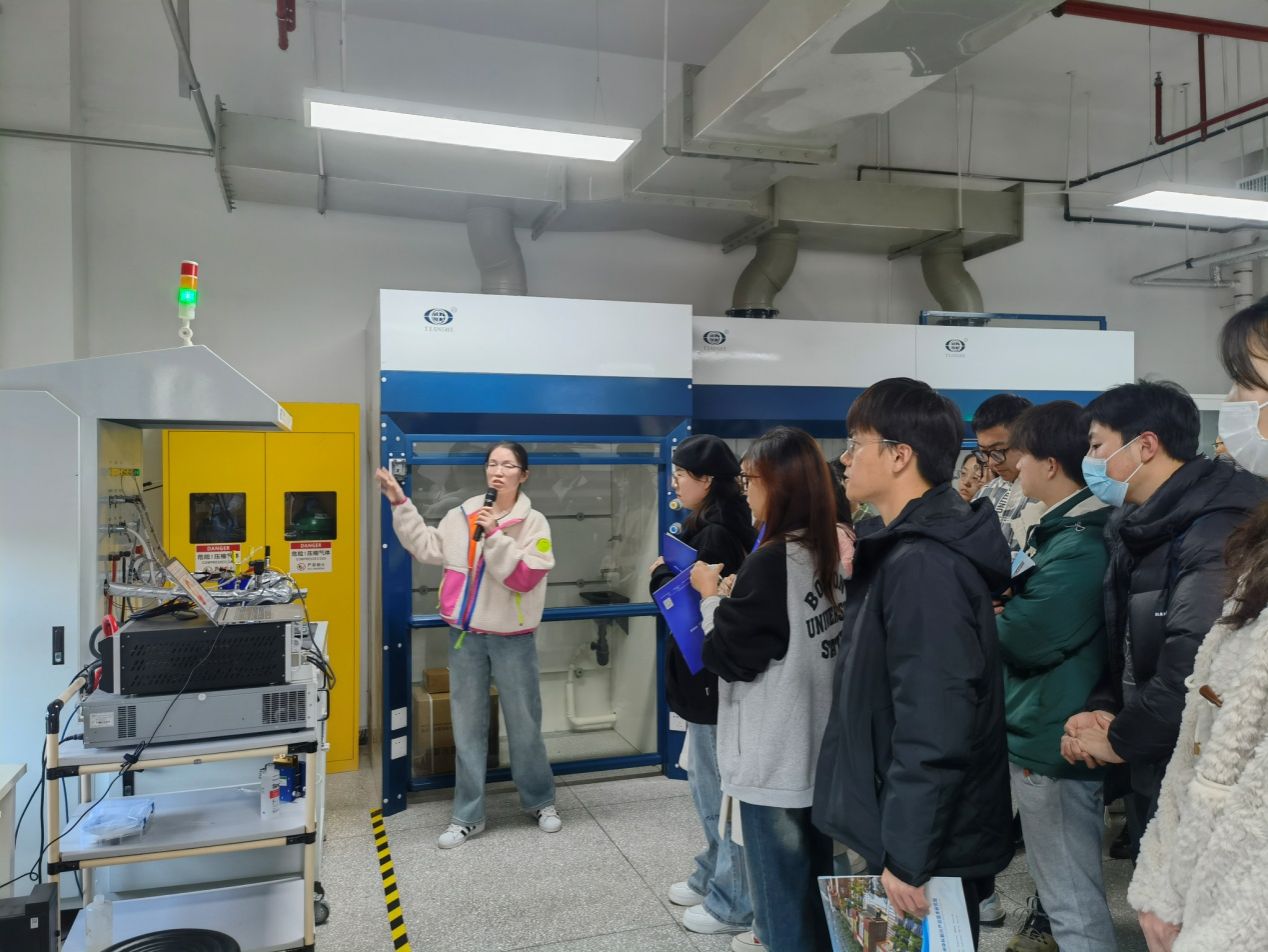 随后,同学们依次前往实验室动力电池中试平台、光学级聚碳酸酯实验平台、基础研发实验室、动力电池储能平台、氢能平台、高能燃料及低碳技术等多个平台,深入了解了高性能动力电池、氢能制储用、高能航天燃料等的研究进展以及研发应用情况。通过本次参观学习,同学们对龙子湖新能源实验室有了更深入的了解,同时,对于国家新能源战略及发展状况有了更深刻的认识。