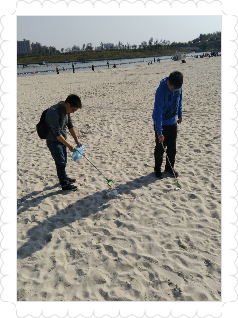 活动开始,由副班长蓝月主持活动开始,主要为大家详细讲解,班长康润泉、团支书丘嘉琦为班级同学照相。其他同学去拾取地上的游客的遗留物或垃圾。