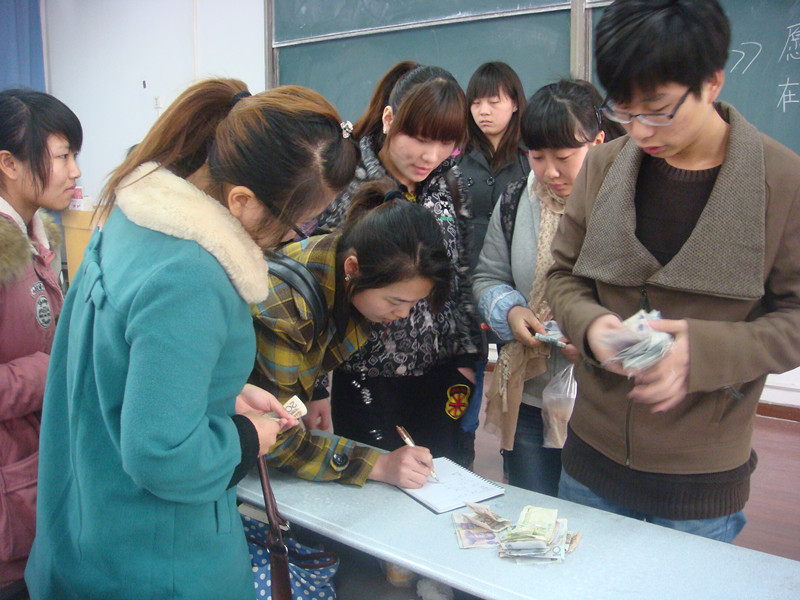 2011级化学班举行爱心捐款仪式,同学们纷纷伸出援助之手,累计捐款1205元。下午,辅导员王路娟代表同学们将捐款送到媛媛辅导员手中,一张张大小面额不等的钱币,犹如一颗颗赤红的爱心,为媛媛送去了温暖和关怀。