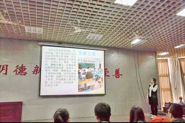 31日下午3点,伴随着优美的旋律,比赛拉开帷幕。6位决赛选手依次上台进行演讲及才艺展示。杨乐乐同学分享了她寒假三农下乡的故事,那与老乡、孩子们浓浓的情谊温暖着大家的心,一段激昂的《少年中国说》朗诵更是使人热血澎湃;孙新同学以诗歌般的言语讲述了她与小青从初识到一路相伴的种种,一曲《明天,你好》把祝福与希望传递给在场每个人;龙银双同学动情地回忆了她三年来的志愿者经历与感受;赵宇晗同学声情并茂地演讲让我们懂得了真正优秀的志愿者不在于参与过多少重大的活动,而在于是否有弯下腰做一件小事的勇气。随后,评委对选手们的表现做了精彩点评。最终,杨乐乐、孙新、龙银双三位同学以出色的表现分别荣获一、二、三等奖,评委们亲自上台为他们颁奖并与所有参赛选手合影留念。此次活动在一片热闹的掌声和欢呼声中圆满结束。