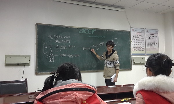 12日下午3点,复试如期而至。这次面试考核内容为现场授课,以此检验选手的知识掌握程度、课堂的把控能力及应变能力。备选课题丰富多样,如“地表的地形”,“电磁铁和磁力”,“水生植物”等。如何将抽象难懂的知识通俗生动地传授给小学生,如何应对课堂中调皮“小学生”的各种状况,如何兼顾课堂秩序与课程安排……重重考验下,选手们灵活应对,各显绝技,以谜语勾起大家兴趣从而引出课题,选班长辅助管理、发奖励等。最后,评委就选手们的现场表现进行点评并提出宝贵的建议。
