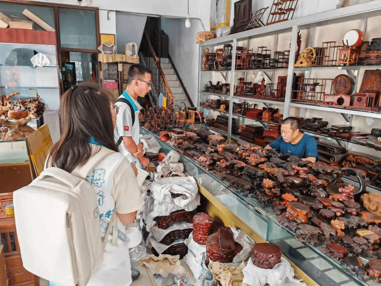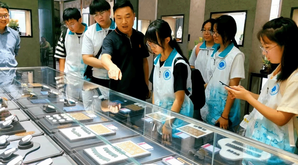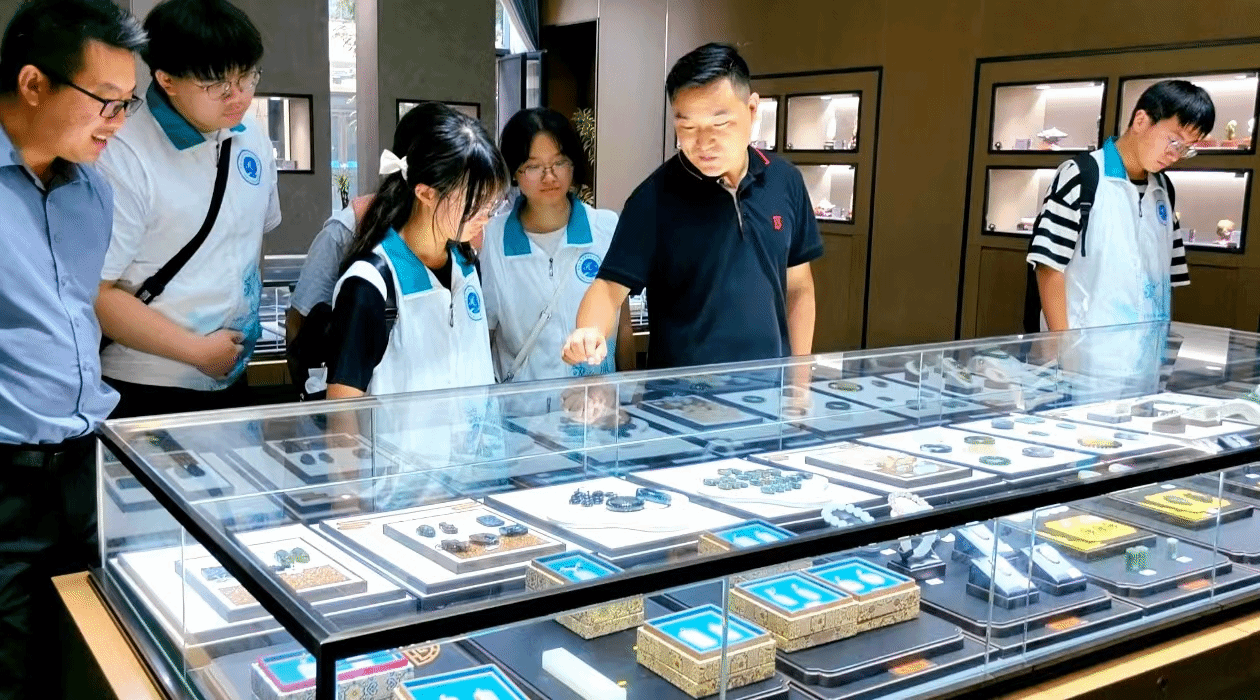 团队成员来到了玉石工厂。团队成员观察到,原石经切割、打磨、雕刻等多道工序最终变成精美的玉器的过程。同时,负责人带团队成员参观了玉石的相关展品,其精美程度令人叹为观止。这不仅让成员们将课堂上学到的化学原理与实际应用相结合,还让他们对矿物的物理性质、化学反应在自然界和工业中的应用有了更直观的认识。