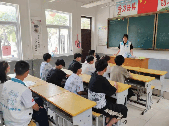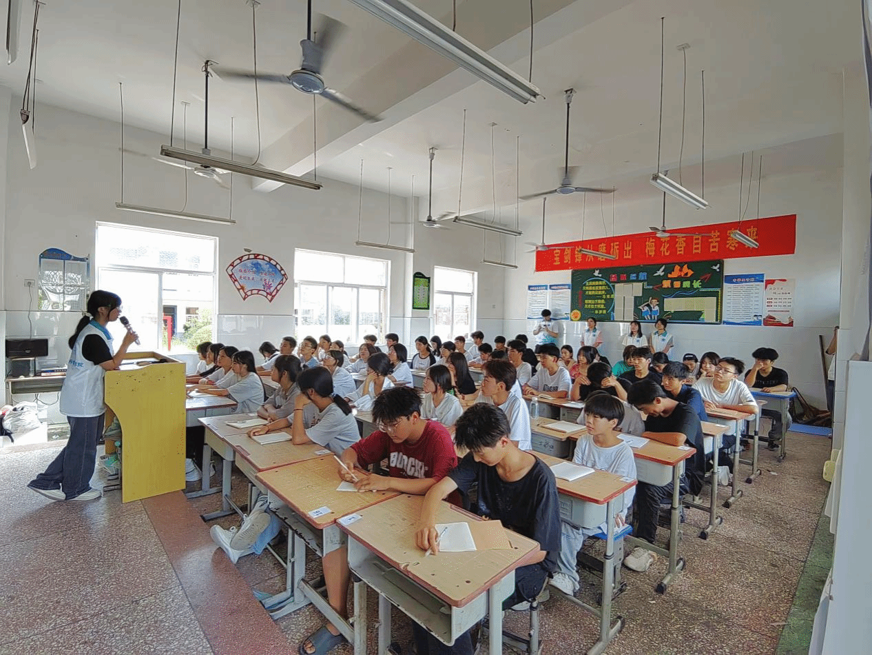 团队成员来到了位于河南省南阳市唐河县桐寨铺镇的桐寨铺第二初级中学举行宣讲活动。团队成员向学生们介绍了大学的丰富生活,包括大学社团的活力四射,志愿服务的温馨感人以及学术研究的严谨求实。此外,成员们还介绍了化学学院和化学专业的特色以及相关研究方向,激发了同学们对化学学科的浓厚兴趣,为他们心中的科学梦想播下了希望的种子。此次宣讲活动激发了中学生对未知领域的兴趣和探索欲望,激励他们树立积极的人生态度,勇于追求梦想,奋发向上。