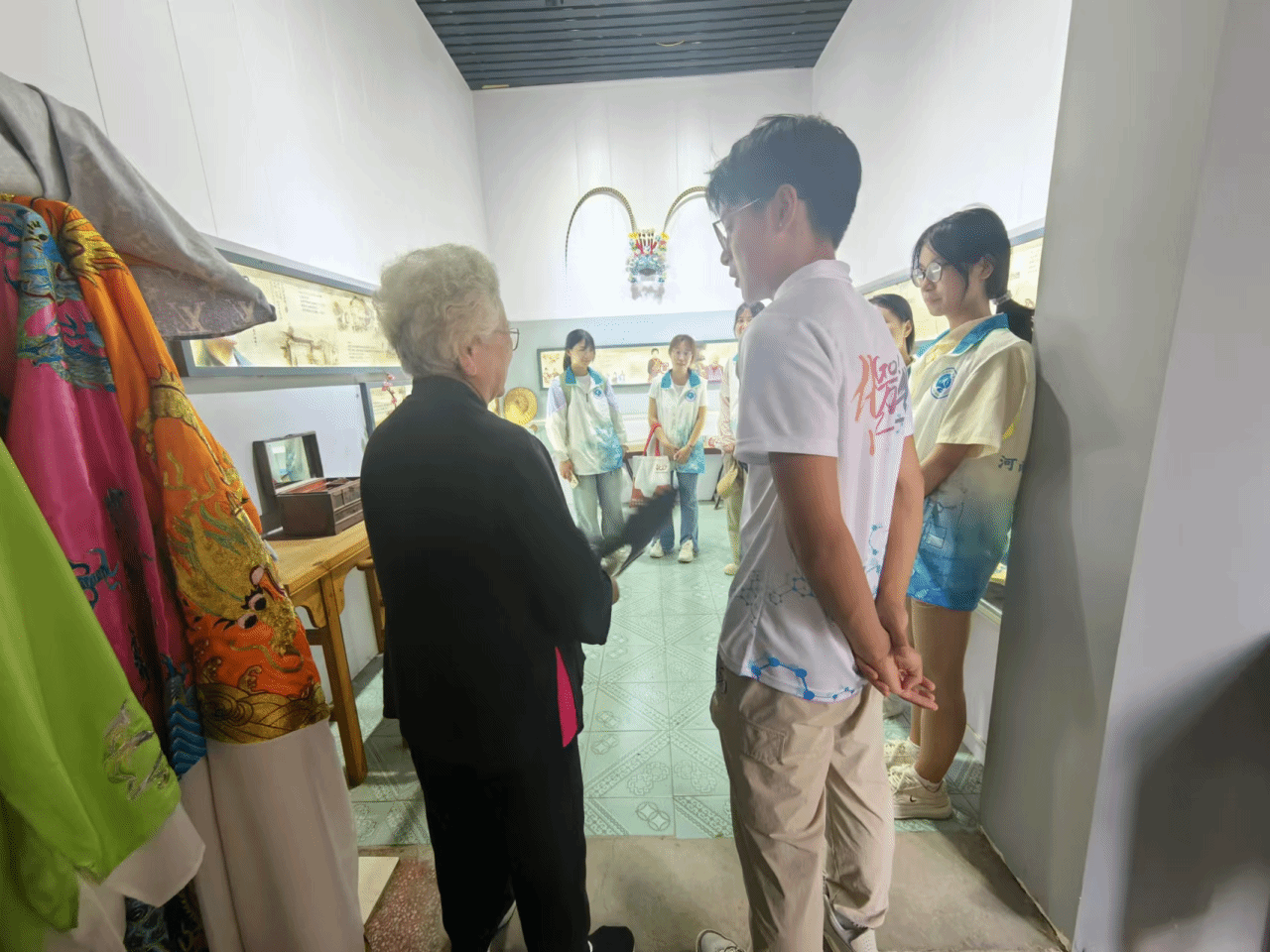 习近平总书记曾发表演讲“要让活态的乡土文化传下去,深入挖掘民间艺术、戏曲曲艺、手工技艺、民族服饰、民俗活动等非物质文化遗产。”开封二夹弦是开封地区流行的独具特色的地方戏。为深入了解二夹弦这一剧种,团队一行人来到了禹王台公园内参观与学习。在剧团创始人田爱云老师的带领与讲解下,成员们参观了剧团资料馆、练功房。团队成员纷纷表示将以此次参观为契机,积极投身到非遗文化的保护与传承工作中去。