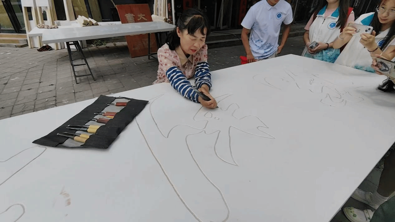 在前半程行程中,团队成员前往义兴牌匾工艺部进行了参观,与第六代传承人芦传芳老师进行了交流。参观期间,芦传芳老师为我们讲述了义兴牌匾背后的故事,向我们科普了牌匾文化内涵、制作等相关知识,并向我们展示牌匾制作技艺雕刻上漆这一工序。不仅让我们感受到牌匾工艺的细致和非遗人那一丝不苟严谨认真的工匠精神,也让我们体会到了非遗传承工作的重要。